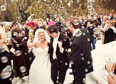 As bolhinhas de sabão flutuando ao lado dos noivos na saída vão deixar as fotos lindíssimas! Além disso, não fazem sujeira e serve como diversão para as crianças. Com os rótulos personalizados, elas ficam um charme!